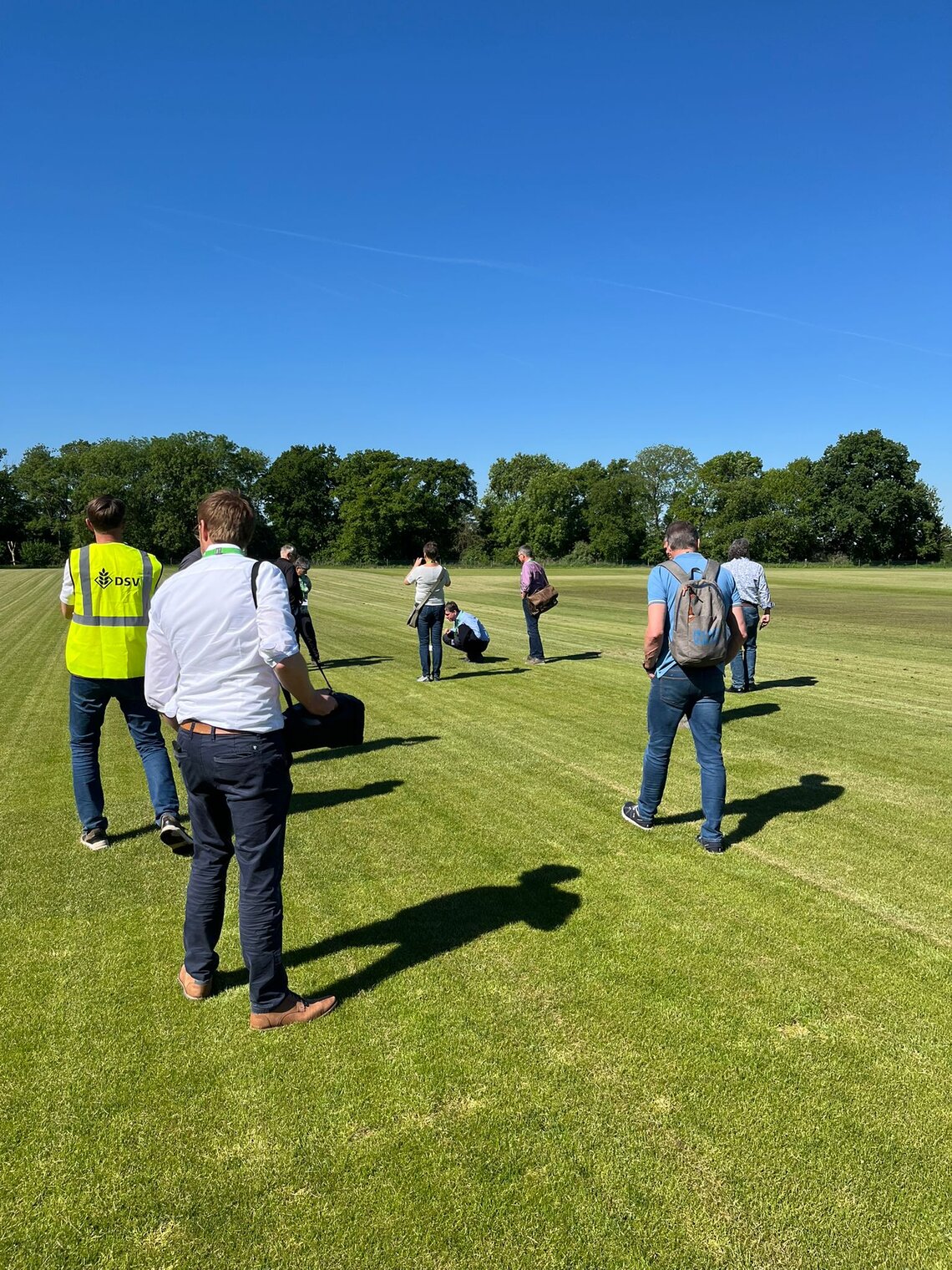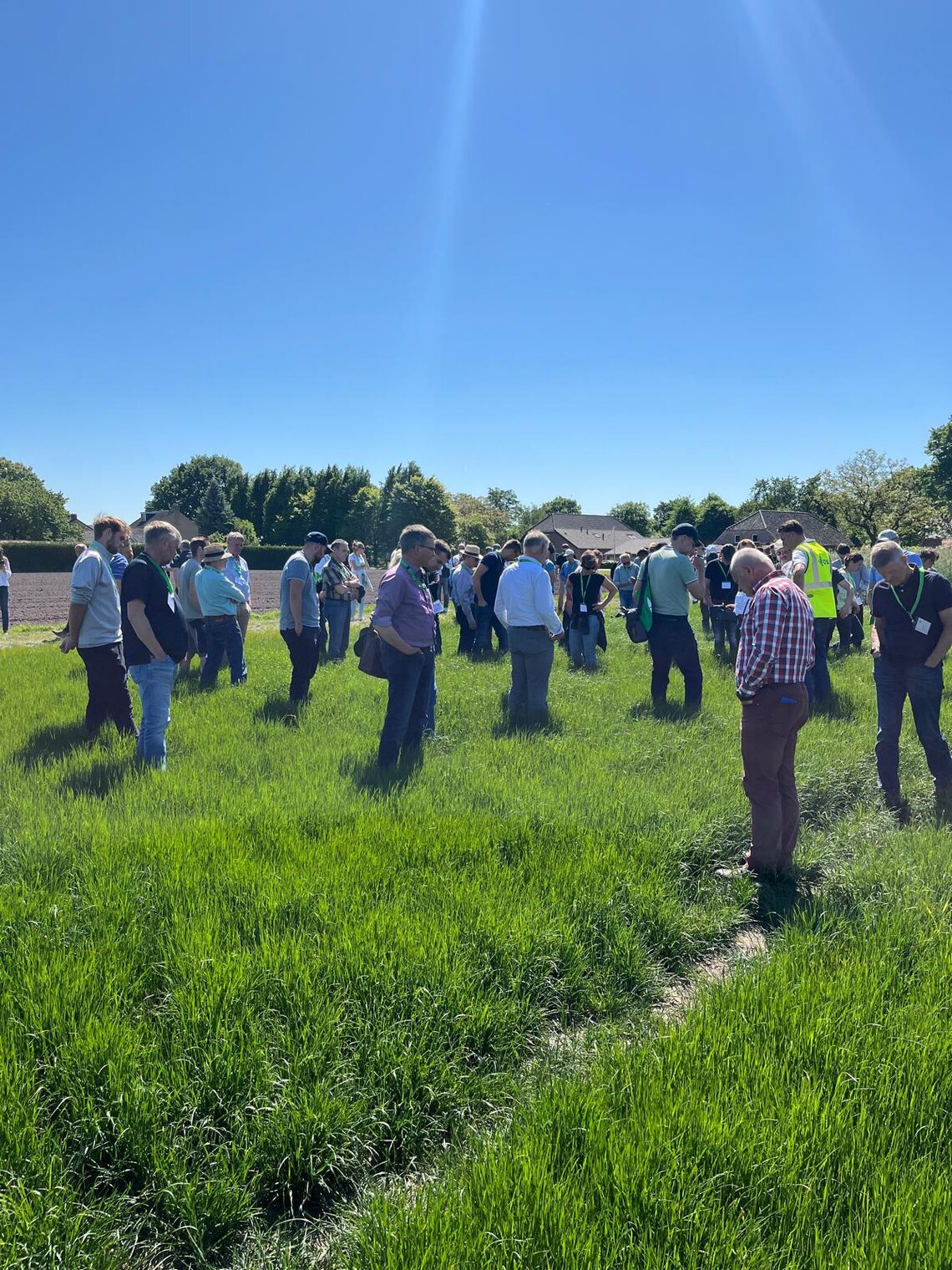 BEZOEK DEUTSCHE RASENGESELLSCHAFT. Op maandag 12 mei mochten wij de grasprofessionals van de Deutsche Rasengesellschaft (DRG) uit Duitsland verwelkomen op ons proefstation in Ven-Zelderheide. De leden van de DRG zijn experts uit diverse deelgebieden van de graswetenschap en -praktijk in Duitsland. Ze zijn afkomstig uit veredelingsbedrijven, maar ook actief als bijvoorbeeld ingenieur op het gebied van bodemvraagstukken en vergroening. Daarnaast brengen ze praktijkervaring mee vanuit onder andere de landschapsinrichting, het sportveldbeheer en de graszodenteelt.