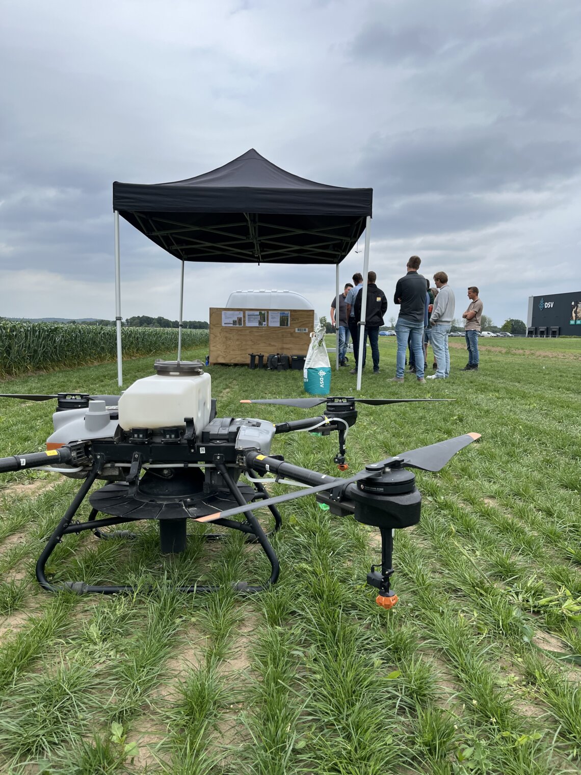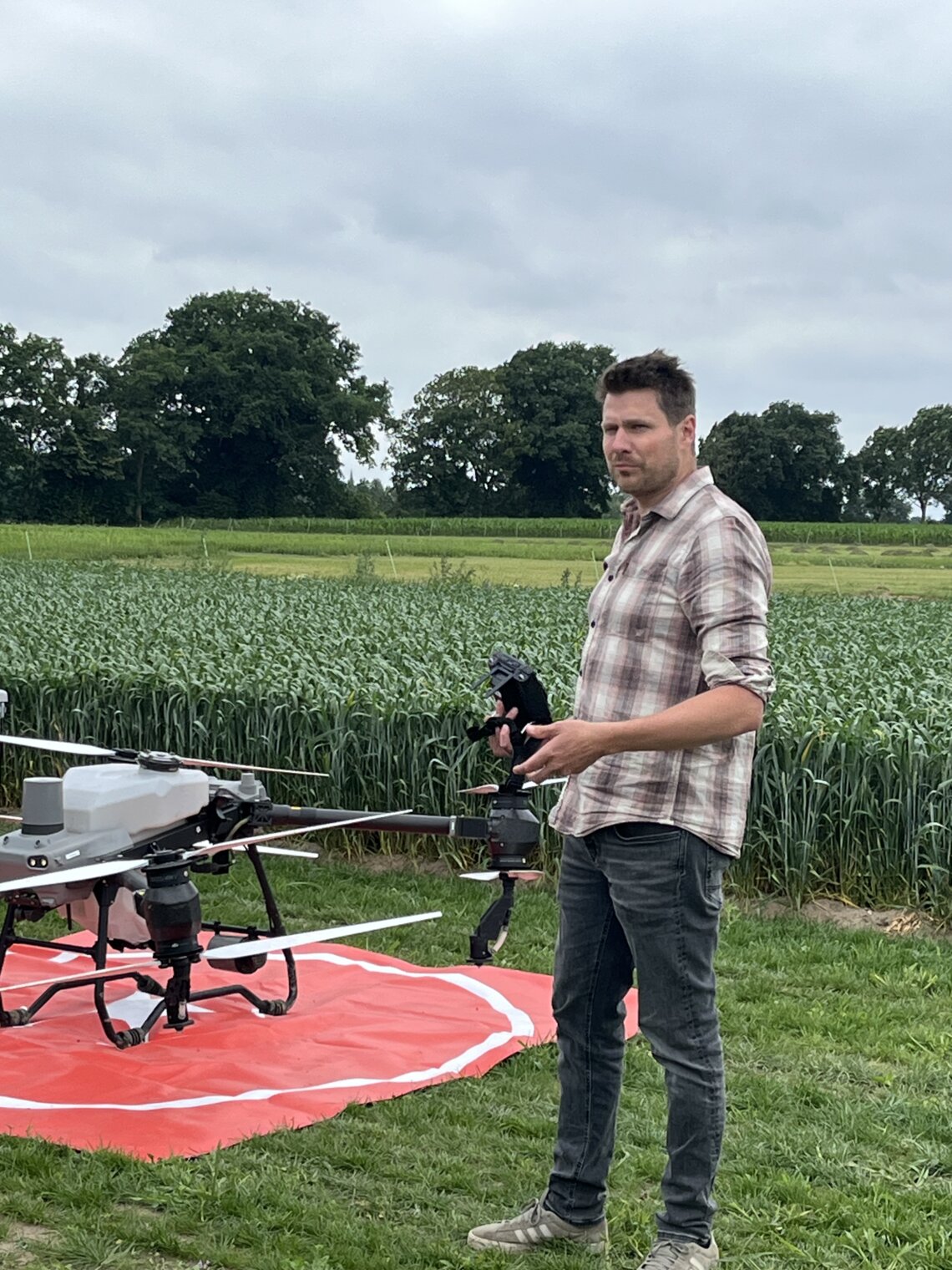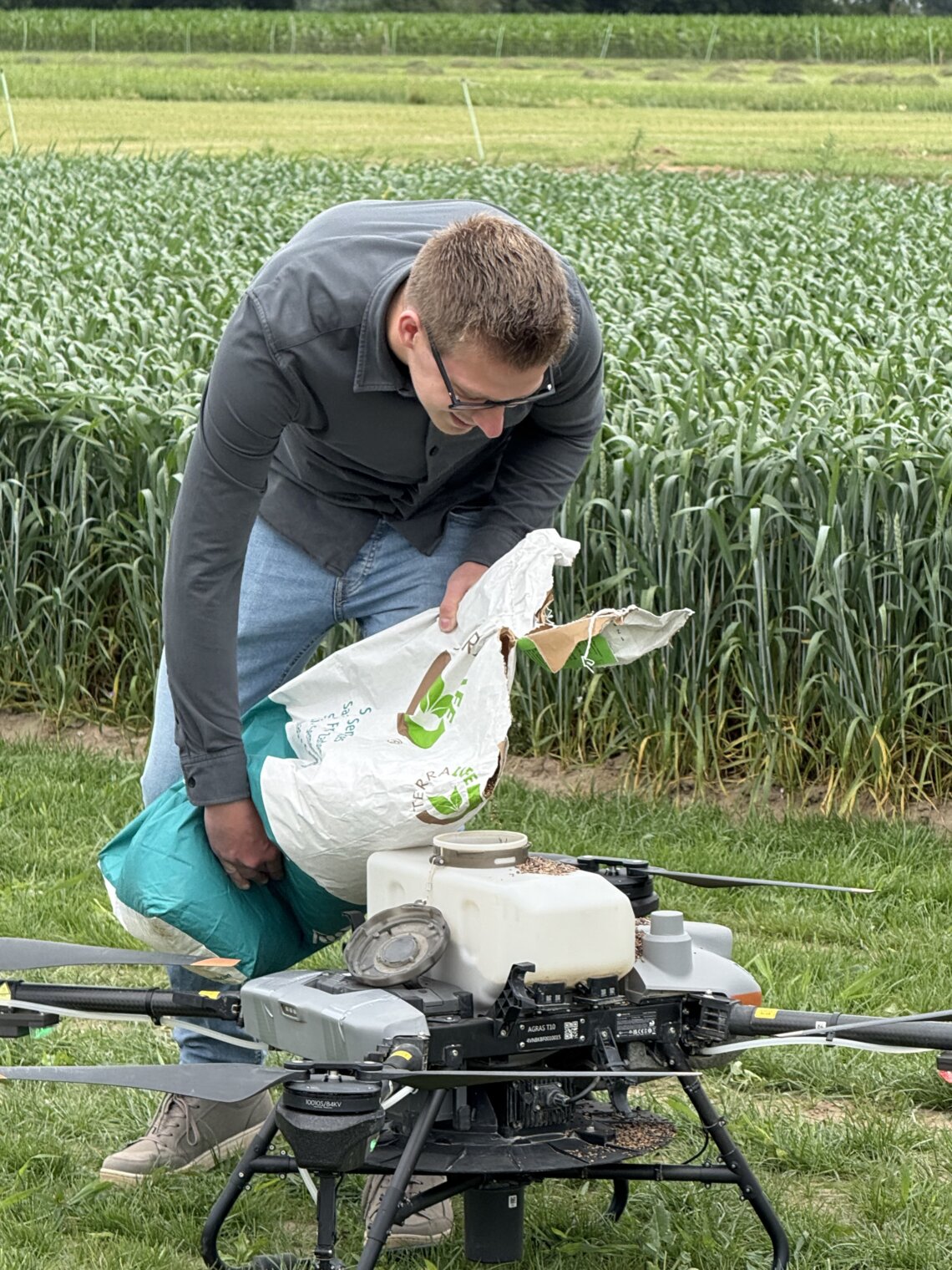 Companion cropping kan uitgevoerd worden door het inzaaien met een drone. Leks Bolderdijk van Abdrone.nl gaf op het veld een live-demo van zo'n drone inzaai met een TerraLife groenbemestermengsel Hij sprak daarbij over de vele mogelijkheden en voordelen welke deze nieuwe techniek kan bieden.