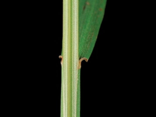 | Blad | Bladbasis gerold, bladschede niet versmolten en kaal tot licht behaard. Bladblad 4-12 mm breed, licht gegroefd met een uitgesproken kiel. De bovenkant van het blad is licht behaard of kaal, de onderkant van het blad is kaal en dof. Het blad heeft bij doorkijk geelgroene lijnen. Tongetje middellang tot lang, wit en zwaar gefranjerd. Geen bladoor. |