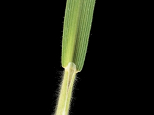 | Blad | Jongste blad gerold, bladblad open. Bladeren aan de onder- en bovenzijde dicht en zacht behaard. Bladscheden gesloten tot dichtbij de bladbasis. Tongetje middellang, naar achteren iets spits. Geen oor. |